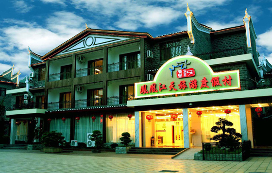 湘西鳳凰江天旅游度假村位于中國十大魅力小城——湖南省湘西自治州鳳凰縣古城區(qū)內(nèi),東鄰虹橋路交通方便,南有清澈的沱江自西向東川流不息,東南角緊靠蜚聲海內(nèi)外的風雨樓——虹橋,與風姿綽綽的吊腳樓群隔江相望,具有仿古建筑特色和現(xiàn)代化室內(nèi)裝修的旅游度假村。湘西鳳凰江天旅游度假村主體酒店客房部均為三層仿古建筑,形成以別致的個性小花園為中心的主樓區(qū)和副樓區(qū),目前擁有各種客房110余間,分為:帶觀景陽臺、配備高檔液晶電腦、獨立寬帶上網(wǎng)的商務房,帶客廳、廚房和露臺花園的豪華套房,以及豪華標準房,所有客房提供免費寬帶接口。整個度假村與鳳凰古城融為一體,是您休閑度假、商務旅游的最佳場所,更是您與古城親密接觸的理想平臺。